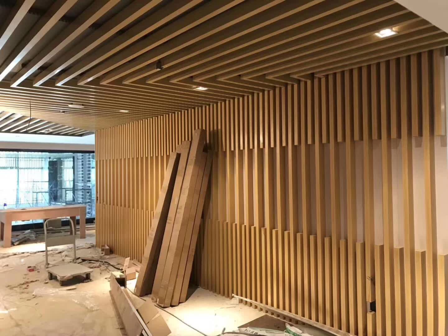 弧形鋁方通吊頂在現代建筑中幾乎抬頭可見,無處不在,木紋鋁方通是一種用在吊頂,拆卸比較方便的材料之一,樣式各種各樣,使用了它可以開闊視野、加快室內空氣的流通